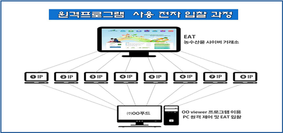 특히 피의자들은 여러 업체가 동일 IP(데이터 발신 주소)를 사용할 경우 부정입찰 등 혐의로 적발되어 입찰제한 등 제제를 받는다는 사실을 알고, 부산 대저동 소재 협동조합 사무실에서 원격지원 프로그램을 이용, 각 소속 업체 PC를 원격 조정함으로써, 마치 각 업체 사무실에 설치된 PC에서 EAT시스템에 개별 접속해 투찰하는 것처럼 IP를 속이는 신종수법을 동원, 입찰과정 상당 부분에 사용해 온 것으로 확인됐다.