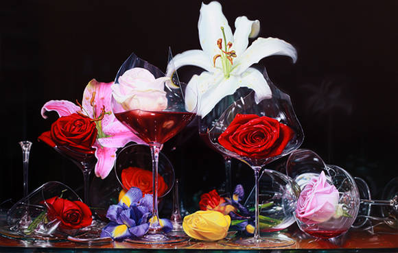 갤러리그림손 측은 "전시장에 보이는 사진보다 더 극사실적으로 그려진 와인잔과 꽃들은 단순한 정물들이 아니다. 인간과 우리의 현실을 적나라하게 보여주기에, 작가가 그려내는 회화 속 이야기는 더 설득력 있게 들리게 다가온다"고 밝혔다.