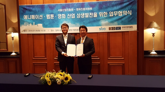 이날 협약식에는 김세훈 위원장과 주형철 서울산업진흥원 대표이사가 참석해 극장용 장편 및 단편 애니메이션영화의 활성화를 위한 협력 네트워크를 구축하고 우수 웹툰 원작의 장편 애니메이션화를 통한 콘텐츠산업의 OSMU 활성화를 위해 상호협력할 것을 약속했다.