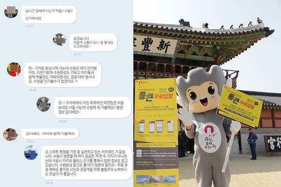 수원시가 2016 수원화성 방문의 해를 맞아 지난 4월 15일부터 실시하고 있는 수원시 카톡친구 주요 관광지 5개소 통큰 무료입장이 관광객에게 큰 호응을 얻으며 대박행진을 이어가고 있다.