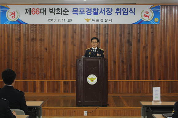 목포경찰서는 11일 11시 4층 대회의실에서 각 과장 및 직원 200여명이 참석한 가운데 제66대 목포 경찰서장의 취임식을 가졌다.
