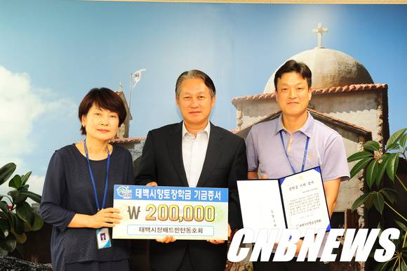 태백시청 배드민턴 동호회 해피콕(회장 이종렬·회원 57명)은 11일 태백시청 투자 상담실에서 제13회 강원도 공무원 배드민턴대회서 3위에 입상해 받은 상금 20만원을 지역인재 육성을 위해 사용해 달라며 태백시민향토장학회에 전달했다.