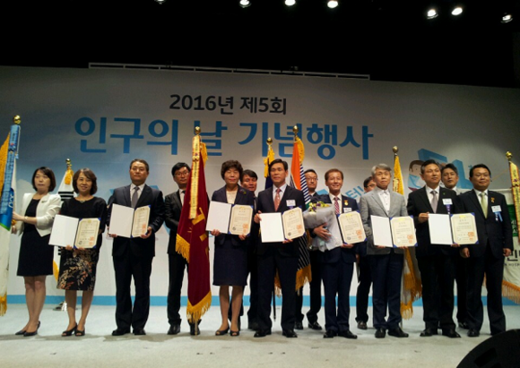 부산시가 11일 오후 2시 서울aT센터 그랜드홀에서 보건복지부가 주관 제5회 인구의 날 기념식에서 저출산 극복 국민인식개선 사업으로 추진한 일가정 양립제도 실천 캠페인을 비롯한 출산장려시책 추진 유공으로 대통령상의 영예를 안았다.