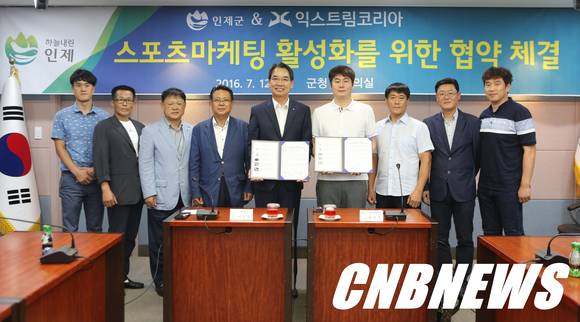 인제군과 수원시 소재 배드민턴 용품 유통 기업 익스트림코리아는 12일 오후 2시 인제군청 소회의실에서 스포츠마케팅 활성화를 위한 협약을 체결했다. 협약식에는 이순선 인제군수와 권우진 익스트림코리아 대표, 김길보 체육청소년과장 및 인제군 체육회 관계자들이 참석했다.