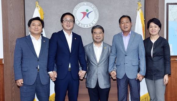 이재정 경기도교육감이 지난 13일 오후 교육감실에서 경기도의회 후반기 의장단을 접견하고 경기교육 현안에 대한 대화를 나눴다.