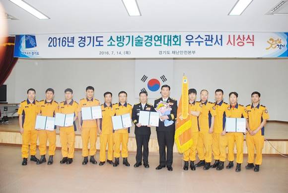 이번 수상에 대한 경연대회는 지난 6월 경기도소방학교에서 2016년 경기도 소방기술경연대회로 화재, 구조, 구급 3개 분야 4개 종목에 대한 기술 평가를 실시, 구급분야 CPR 및 외상평가 분야에서 1위, 화재분야 4인 전술은 2위, 구조분야에서도 우수한 성적을 거둬 종합평가 우수관서로 선정됐다.