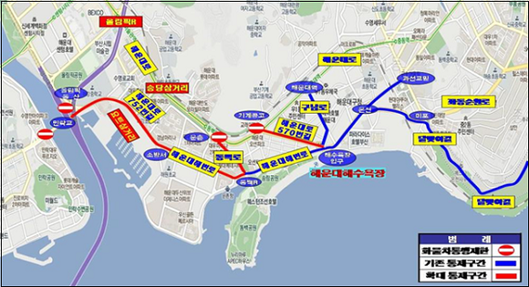 부산시 관계자는 “해운대해수욕장 주변 교통통제로 인해 차량이 집중될 것으로 예상됨에 따라 가급적 편리한 대중교통을 이용하고 자가용 승용차이용을 자제해 주시길 당부드린다”며 “해수욕장 이용시에는 인터넷이나 스마트폰으로 교통정보를 확인하여 출발하는 것이 교통정체 정보에 도움이 될 것이다”고 말했다.