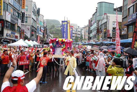 ▲태백시지역현안대책위원회(이하 대책위)가 14일 오후 1시 30분 태백시 중앙로일대에서 주최측 추산 시민 5000여명이 참가해 대정부 투쟁 태백시민총궐기대회를 열고 있다.