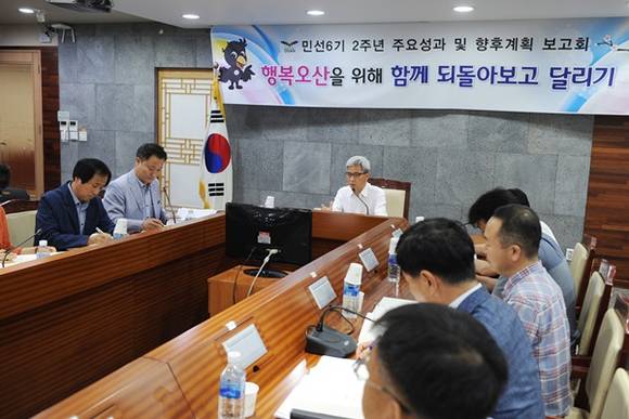 보고회는 국·소장을 비롯한 부서장 및 6급 팀장 전원이 참석한 가운데 “행복오산을 위해 함께 되돌아보고 달리기”라는 부제로 민선6기 2년 동안의 추진상황을 점검하고 발전방안을 모색하는 시간을 가졌다.