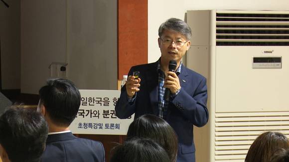 강연에서 민 구청장은 ‘균형발전’과 ‘분권’의 개념을 명확히 구분했다. 민 구청장은 “균형발전론은 ‘중앙’을 전제하면서 중앙에 쌓인 문제를 ‘지방’을 통해 해결하려는 불순한 동기까지 갖고 있다”며 “단기적으로 취해야 할 정책이 균형발전이지만, 궁극적으로 분권을 쟁취해야 한다”고 밝혔다.
