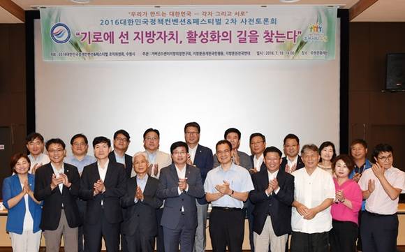 이번 토론회는 오는 9월 24일과 25일 양일간 수원에서 개최될 2016 대한민국 정책컨벤션&페스티벌의 사전 토론회 성격으로 행사 조직위원회와 수원시가 공동 주최하고 거버넌스센터 지방의정연구회, 지방분권개헌국민행동, 지방분권 전국연대 공동 주관으로 열렸다.