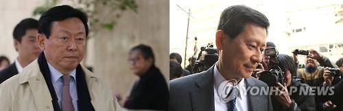 ▲신동빈 롯데그룹 회장(왼쪽)과 신동주 전 일본롯데홀딩스 부회장.