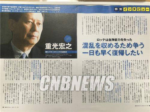 ▲일본 주간지 ‘다이아몬드’ 7월 4일자에 실린 신동주 전 일본롯데홀딩스 부회장 특별 인터뷰. 신 전 부회장은 한일 양국을 오가며 여론전을 펴고 있다.