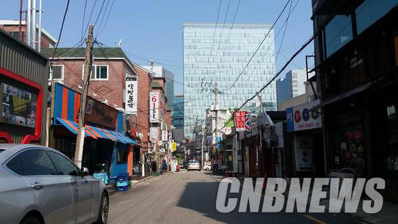 ▲롯데복합쇼핑몰 예정부지와 마주보고 있는 상암동 먹자골목의 22일 오전 모습. 약 100여 곳이 성업 중인데, 향후 롯데쇼핑몰이 들어서게 되면 큰 타격을 입을 것으로 예상된다. (사진=도기천 기자)