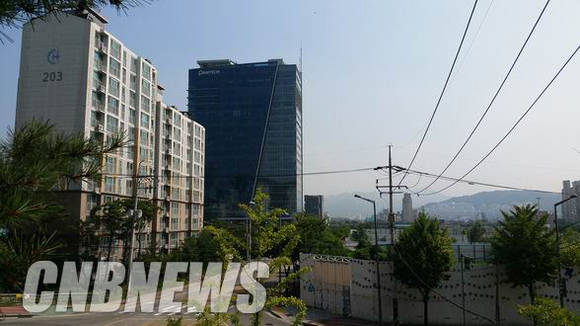 ▲디지털미디어시티(DMC) 롯데복합쇼핑몰 예정부지(오른쪽)의 22일 모습. 맞은편 아파트 단지(왼쪽)를 비롯, 인근 아파트 주민들은 조속한 건립을 촉구하는 서명운동을 벌이고 있다. (사진=도기천 기자)