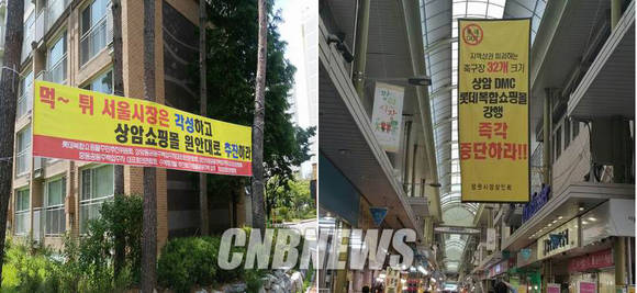 지역 상인들이 반대하는 이유는 쇼핑몰과 기존 상권이 겹치기 때문이다. 쇼핑몰이 들어서면 100~300미터 거리에 위치한 상암동 상점가 100여곳은 물론, 5km 반경 내에 있는 8500여개의 상점과 재래시장, 중소상인들이 큰 타격을 입을 것으로 예상된다.