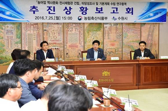 한편 수원시는 농어업 역사․문화․전시체험관을 대지면적 5만㎡, 건축연면적 1만8000㎡규모로 농업관, 미래 정밀농업 및 ICT․BT 연계 농산물 등 첨단 농업관, 귀농귀촌 및 도시농업 라운지 등의 본관과 어린이박물관, 유리 온실을 건립, 오는 2020년 개관할 예정이다.