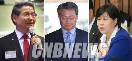 ▲법조계 비리 의혹에 연루돼 구속기소 된 검사장 출신 홍만표 변호사(가운데)는 감영철 CTS회장(왼쪽)의 변호인 이었다. 더불어민주당 서영교 의원(오른쪽)은 감 회장의 수백억대 횡령 및 배임 의혹 사건이 무혐의를 받은 것과 관련, 홍 변호사의 ‘전관 파워’가 작용한 것 아니냐는 의혹을 제기하고 있다.