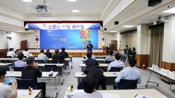 김병준 산업국장의 안성시의 투자유치 정책 방향을 주제로 기업 유치의 어려움과 당위성, 나아가 지속적인 투자 전략과 주민 당부 사항에 대한 설명에 이어 황은성 안성시장의 기자들의 질문에 대한 답변으로 진행됐다.