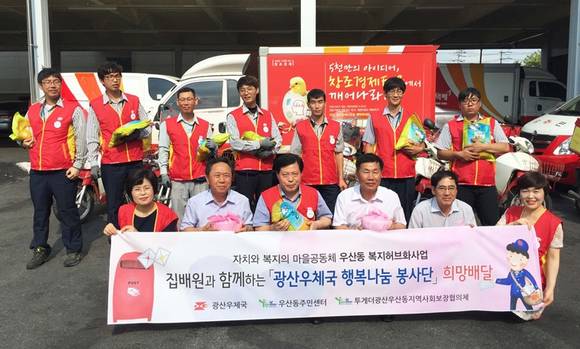 광주광산우체국(국장 박호열) 우정사회봉사단은 지난 25일 광산구 우산동주민센터와 연계하여 행복나눔 봉사활동을 펼쳐 귀감이 되고 있다.