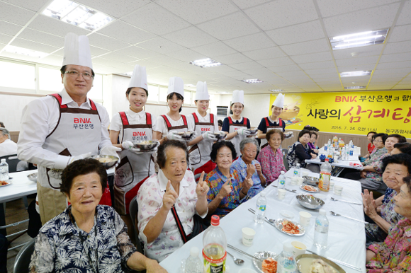 BNK금융그룹(회장 성세환) 부산은행이 여름철 대표 보양식인 삼계탕으로 이웃사랑을 실천한다.