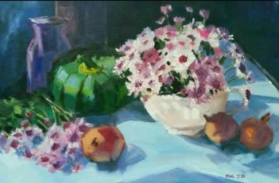 ▲지난 7월 일산동구청 갤러리 가온에서 전시했던 '색담기전' 작품(사진= 김진부 기자)