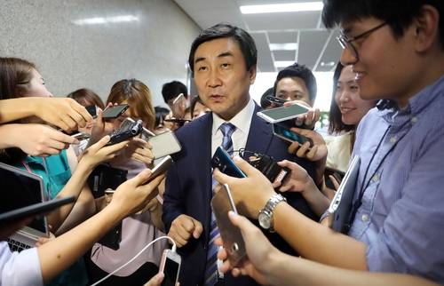 ▲당권도전 고민을 거듭하고 있는 더불어민주당 이종걸 비대위원이 27일 오전 김종인 비상대책위 대표를 면담한 뒤 당 대표실을 나서며 취재진의 질문세례를 받고 있다.(사진=연합뉴스)