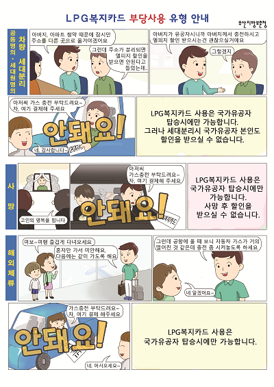 부산보훈청은 복지카드 부당사용 방지를 위해 만화로 된 안내문을 제작해 복지카드 사용자 및 보훈회관, 보훈병원 등에 꾸준히 배부하고 있고, 배너 및 전광판 등을 활용한 다양한 방법으로 홍보를 하고 있다.