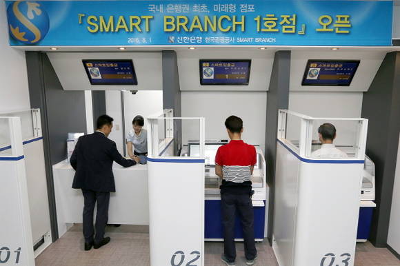 신한은행 스마트 브랜치는 통장 및 인터넷뱅킹 신규 등이 가능한 ‘디지털 키오스크’를 입출금창구 직원 자리에 배치해 기존 입출금창구 업무의 90% 이상을 셀프뱅킹으로 편리하고 빠르게 이용할 수 있는 고도화된 개념의 은행점포라는 것.