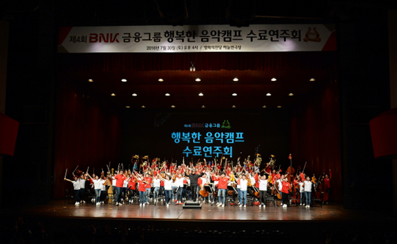 BNK금융그룹(회장 성세환)이 지난달 30일 오후 영화의전당 하늘연극장에서 '제4회 BNK행복한 음악캠프' 수료연주회를 개최했다.