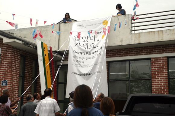 동서대(총장 장제국) 디자인대학 학생 20명과 이 대학 퍼블릭디자인 앤 라이팅연구소 연구원들이 7년 전부터 매년 DMZ에 조성돼 있는 해마루촌을 방문해 디자인예술마을 만들기 봉사활동을 펼치고 있어 눈길을 끌고 있다.