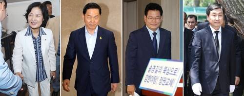 ▲더불어민주당은 당 대표 경선에 4명 이상이 출마할 경우 예비경선을 통해 3명만 추려내도록 규정하고 있는 당헌당규에 따라 오늘 오후 국회 의원회관에서 예비경선을 열어 추미애·이종걸·김상곤·송영길(기호순) 후보 등 차기 당 대표 후보 네 명 가운데 오는 27일로 예정된 전당대회의 본선에 진출할 세 명을 선출하고 한 명을 탈락시킨다.(사진=연합뉴스)