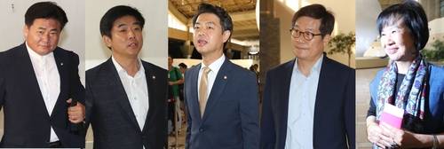 ▲더불어민주당 (왼쪽부터) 소병훈, 김병욱, 김영호, 신동근, 손혜원 의원이 중국 공산당 관계자 및 학계·교민과 사드 국내 배치 문제를 논의하기 위해 8일 오전 김포공항을 통해 중국으로 출국하고 있다. (인천=연합뉴스)