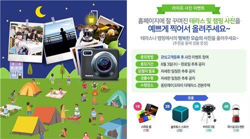 추첨을 통해 스마트빔(1명), 블루투스 스피커(2명), 바비큐 그릴(3명), 퍼스널 LED 랜턴(5명) 등 테라스와 캠핑용 선물을 증정한다.