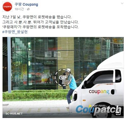 쿠팡은 11일 페이스북에 “지난 7일 낮 쿠팡맨이 로켓배송을 했습니다. 그리고 사.뿐.사.뿐. 뛰어가 고객님을 만났습니다. ‘쿠팡패치’가 쿠팡맨의 로겟배송을 포착했습니다”는 글과 함께 움짤(움직이는 사진)을 올렸다.
