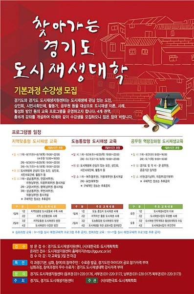 경기도 도시재생지원센터는 도시재생에 관심 있는 경기도민을 대상으로 오는 17일부터 찾아가는 경기도 도시재생대학을 개강한다고 밝혔다.