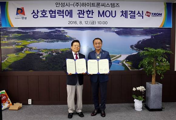 안성시가 12일 오전 시장실에서 관내 CCTV 생산업체인 ㈜하이트론씨스템즈와 MOU 체결식을 갖고 안전한 도시 안성 구축을 위해 상호협력 하기로 했다.