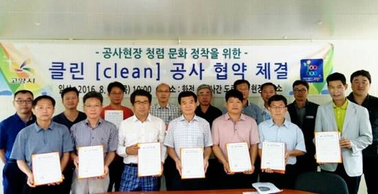 고양시(시장 최성)는 대형 공사장 청렴문화 정착을 위한 클린(clean)공사 협의체를 구성하고 지난 11일 '클린공사 협약 체결 및 청렴교육'을 실시했다고 밝혔다.