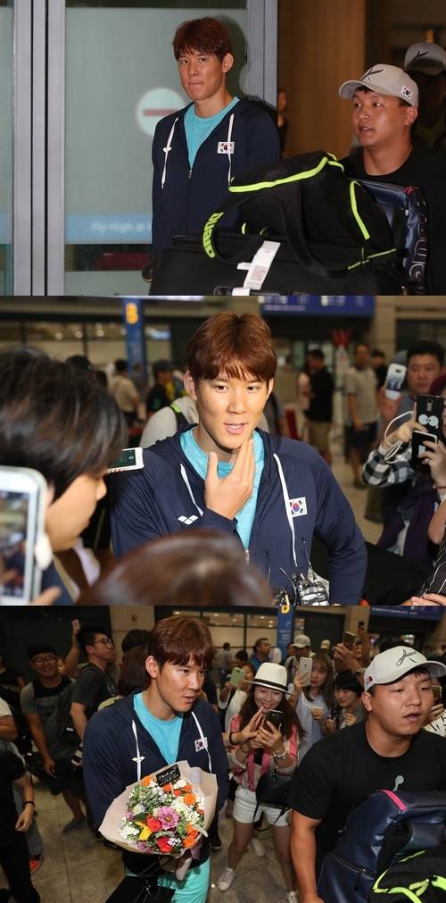 13일 오전 리우데자네이루 올림픽을 조기에 마치고 귀국한 수영 국가대표 박태환(27) 선수가 인천국제공항 입국장에 도착하고 있다.
