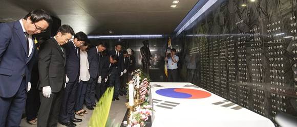 경기도의회 정기열 의장이 15일 제 71주년 광복절을 맞아 남경필 도지사, 김호겸 부의장, 남경순 경제과학기술위원장, 안혜영 의원, 박재순 의원 등과 함께 수원 인계동에 있는 현충탑을 참배했다.