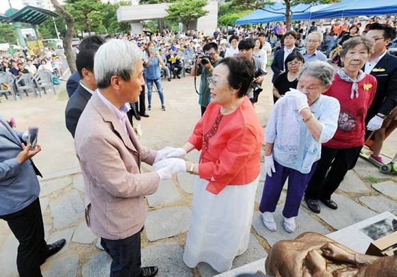 이날 제막식에 곽상욱 오산시장, 손정환 오산시의회 의장, 도의원 및 시의원들과 나눔의집에 거주하고 있는 이용수, 강일출, 박옥선 할머니, 오산평화의소녀상 건립시민추진위원회 5명의 공동추진위원장과 많은 내빈 및 500여명의 시민들이 참석해 뜻깊은 제막식을 함께 지켜봤다.
