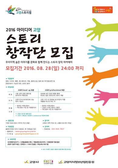 고양시와 (재)고양지식정보산업진흥원(원장 김인환)은 한국콘텐츠진흥원과 함께2015년도에 이어 올해에도 '스토리랩 창작단'을 모집한다고 밝혔다.