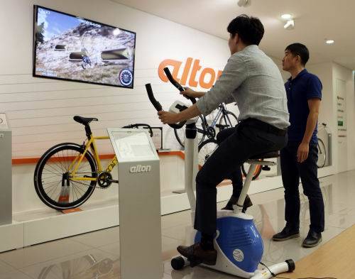 ▲KT는 생활밀착형 IoT에 주력하고 있다. 자전거 전문기업 알톤스포츠와 손잡고 ‘GiGA IoT 헬스바이크’ 서비스를 공급하고 있다. (사진=KT)