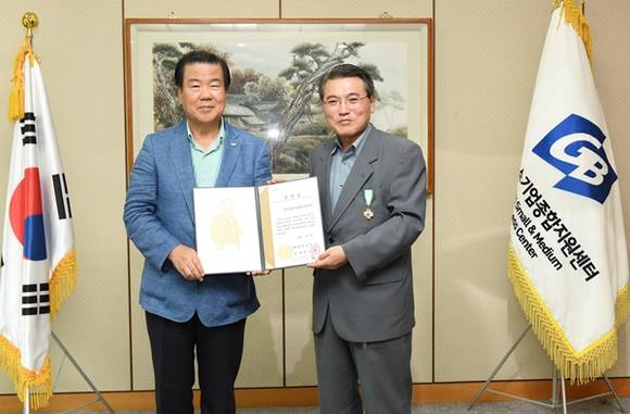 수여식에는 윤종일 경기중기센터 대표이사와 김훈동 대한적십자사 경기도지사 회장을 비롯해 양 기관 관계자 10여명이 참석했다. 적십자 회원유공장 금장은 누적기부금 500만 원 이상인 법인과 개인에게 수여하는 적십자사 포장증 중 하나로 경기중기센터는 현재까지 총 720만 원을 대한적십자사에 기부했다.