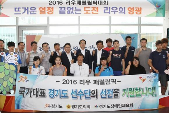 경기도장애인체육회는 오는 9월7일부터 18일까지 브라질에서 개최되는 제15회 리우 패럴림픽에 참가하는 경기도 선수단을 격려하기 위해 이천 장애인체육종합훈련원을 방문했다. 특히 이번 방문에는 경기도의회 정기열 의장과 이현호 의원도 함께 방문해 선수단을 격려했다.