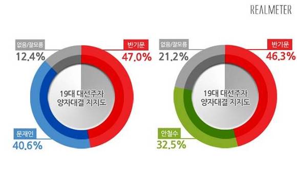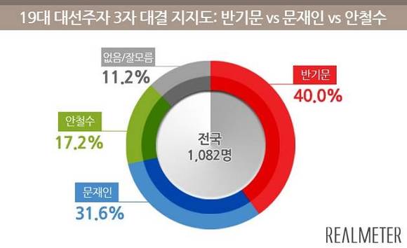 [리얼미터] 차기대선 ‘3자대결’, 반기문40% >文31.6% >安17.2%