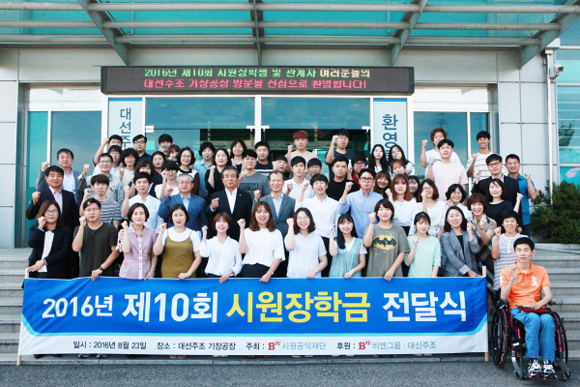 시원공익재단은 23일 대선주조㈜ 기장공장에서 '제10회 시원장학금 전달식'을 가지고 부울경 14개 대학교의 사회복지학 전공생 42명에게 총 4200만원을 전달했다.