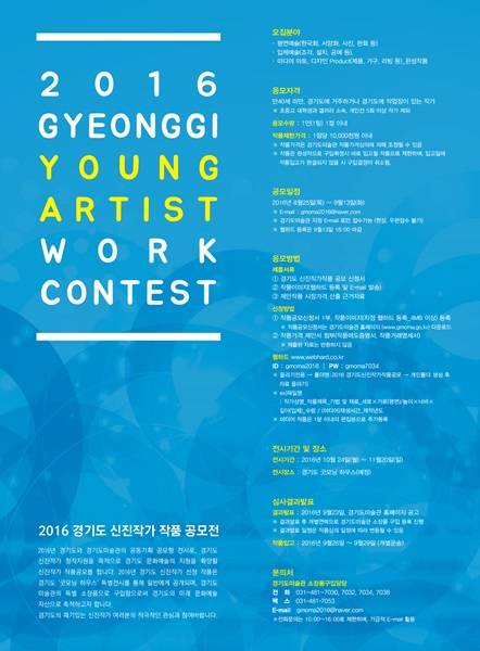 경기도미술관과 경기도가 함께 추진하는 이번 공모전은 신진 작가를 발굴, 지원해 경기도 문화예술 확대하기 위한 목적으로 마련되는 공모전으로 응모 자격은 만 40세 미만으로 경기도에 거주하거나 경기도에 작업장이 있는 작가이다. 초‧중‧고등학생 및 대학생, 갤러리 소속, 개인전 5회 이상 작가는 제외된다.