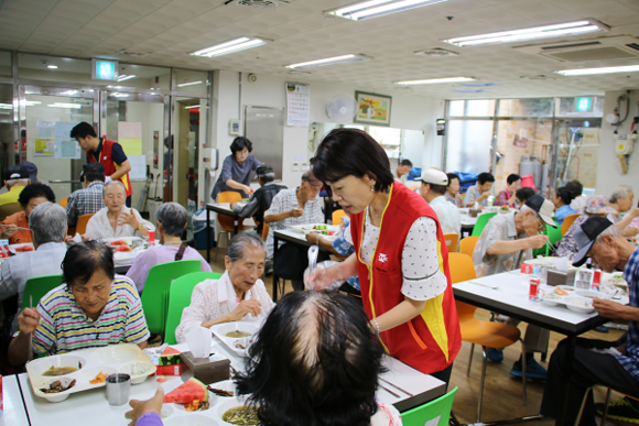 부산지방우정청 남부산우체국(국장 박병률) 사랑나눔회는 23일 오전 10시 부산 남구지역의 생활형편이 어려운 홀몸어르신들을 초청해 LA갈비, 시락국, 닭가슴 샐러드 등 어르신들이 좋아하는 메뉴를 선정하여 무료 급식을 실시했다. (사진제공=부산우정청)