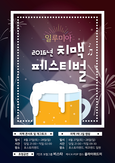 소셜커머스를 통해 사전 예약을 할 경우, 치맥은 추가 7천원, 캠핑은 추가 1만원만 지불하면 된다. 해당 비용만 부담하면 생맥주를 무제한으로 마실 수 있다. 인기그룹 비스타의 공연과 K-POP 댄스, 게임, 경품행사도 진행될 예정이다.